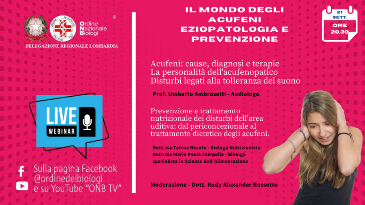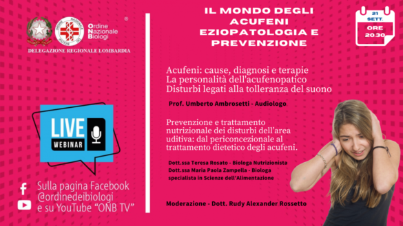 Il 21 e 29 settembre e il 7 ottobre prossimi si terranno tre webinar della delegazione Lombardia dell’Onb dal titolo “Acufeni, ipoacusie e disturbi dell’udito”.