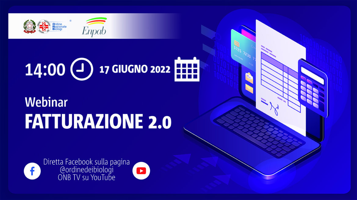 Il 17 giugno 2022, a partire dalle 14:00, l’Ordine Nazionale dei Biologi organizza il secondo webinar dedicato al tema “Obbligo di fatturazione elettronica per regimi forfettari e ordinari. Adempimenti e procedure“, con il contributo del dott. Francesco Blasi e della dott.ssa Francesca Bosco, consulenti dell’Ordine, e del dott. Claudio Pisano, consulente fiscale dell’Enpab, l’ente di previdenza sociale dei Biologi italiani.