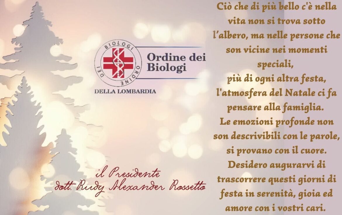 Notizie Auguri di buon Natale e feste in serenità, gioia ed amore con i vostri cari-VIDEO all’interno di development 21 Dicembre 2022 21 Dicembre 2022 1,4K views 1,4K GUARDA IL VIDEO CON GLI AUGURI DI NATALE 2022 DEL CONSIGLIO DIRETTIVO, del consiglio dell’ordine dei Biologi della Lombardia e dei revisori dei conti CLICCA QUI 0 FacebookTwitterPinterestEmail Articolo precedente OB Lombardia: sede chiusa il 20 e dal 23 all’1 gennaio (compresi), per le festività natalizie Articolo successivo “Biologi in cattedra”: aperte le candidature al “Progetto Scuola” dell’OB Lombardia Articoli correlati Welion Card: un vantaggio esclusivo e gratuito per... 19 Settembre 2025 Celiachia: informazione, cultura alimentare e rete territoriale –... 28 Ottobre 2025 Italia–Brasile: la visione del Presidente Rossetto si rivela... 23 Ottobre 2025 Il Presidente Rossetto in visita al Panificio Militare... 24 Ottobre 2025 Innovazione e visione globale: la vicepresidente Bedoni nei... 21 Ottobre 2025 La violenza verso gli operatori sanitari: prevenire attraverso... 17 Ottobre 2025 Rinnovo della Presidenza dell’Ordine Interprovinciale dei Chimici e... 17 Ottobre 2025 Il ruolo strategico del Biologo nella promozione della... 13 Ottobre 2025 Lago Varese Hub: l’idea di un laboratorio permanente... 10 Ottobre 2025 Collaborazioni professionali e innovazione: l’approccio dell’Ordine dei Biologi... 8 Ottobre 2025