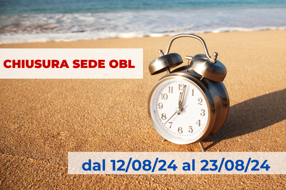 Si avvisa che la sede dell’Ordine dei Biologi della Lombardia resterà chiusa da lunedì 12 agosto 2024 a venerdì 23 agosto 2024.