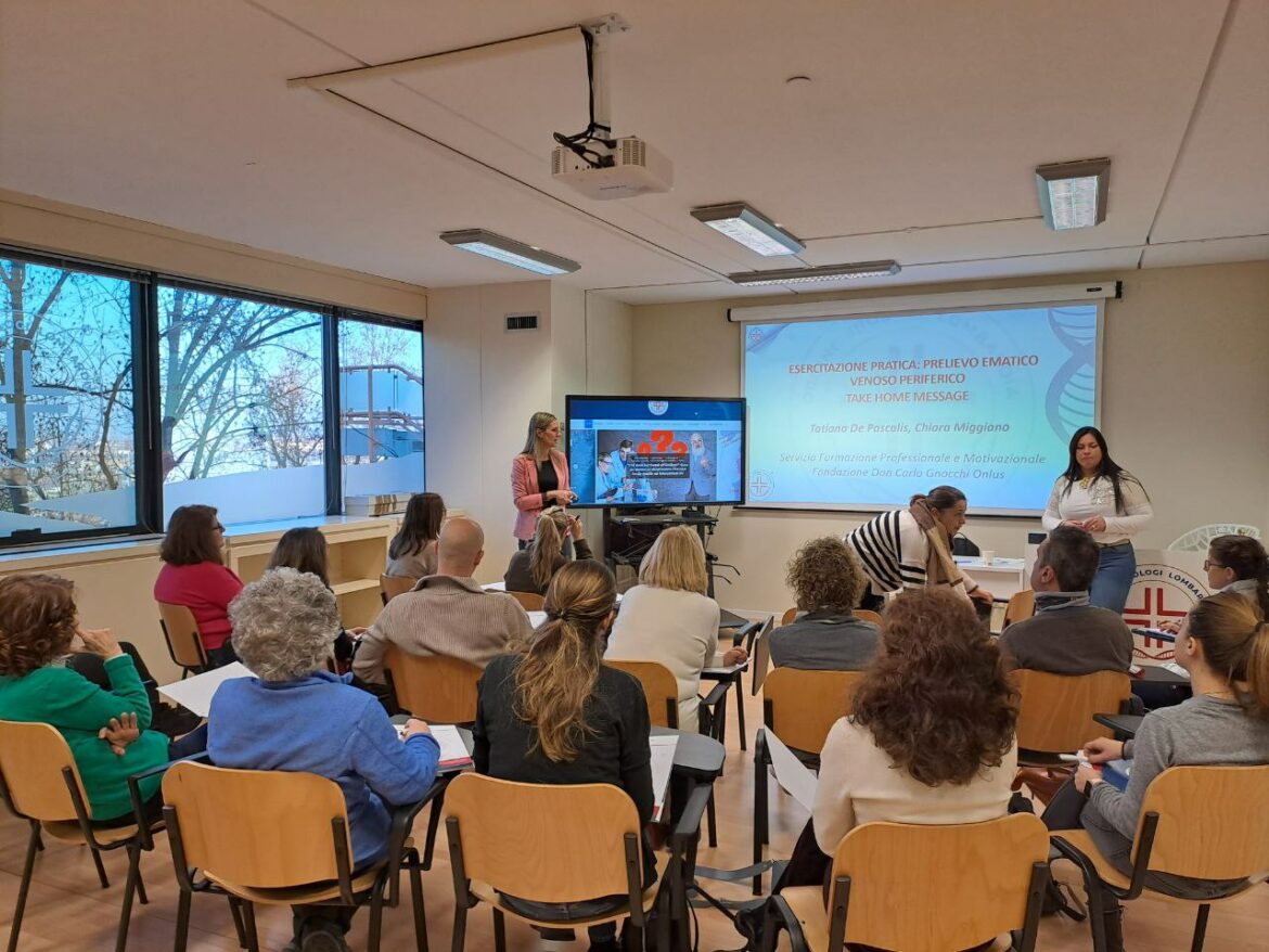 - Training sul campo: 15 ore di stage presso diversi centri prelievi convenzionati con OBL in diverse province lombarde, inclusi centri Bianalisi, ASST Lecco, e Ospedale di Valparma, oltre a sedi della Fondazione Don Gnocchi come IRCCS Santa Maria Nascente e Istituto Palazzolo.