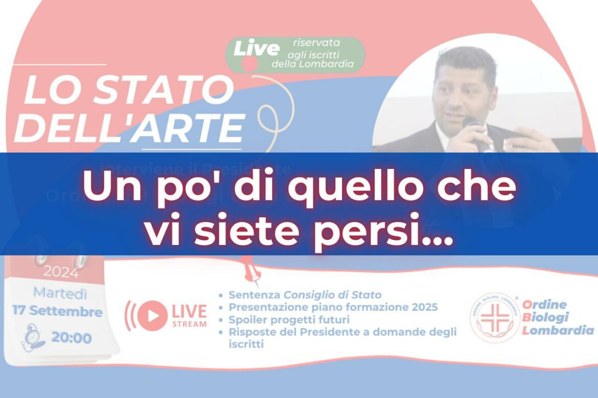 Il Presidente, che da sempre si impegna ad arrivare con ogni tipo di comunicazione “direttamente a casa di tutti i Biologi lombardi”, ha calorosamente ringraziato i consiglieri presenti alla diretta e tutti gli iscritti per la partecipazione. “È un forte segnale di appartenenza che mi spinge ad andare avanti in questa direzione”. Su questo aspetto il Presidente ha lanciato nella diretta l’ennesimo spoiler che riguarda la creazione di un podcast tutto dedicato ai Biologi e alla biologia, che spera possa avere inizio a fine 2024 inizi 2025.