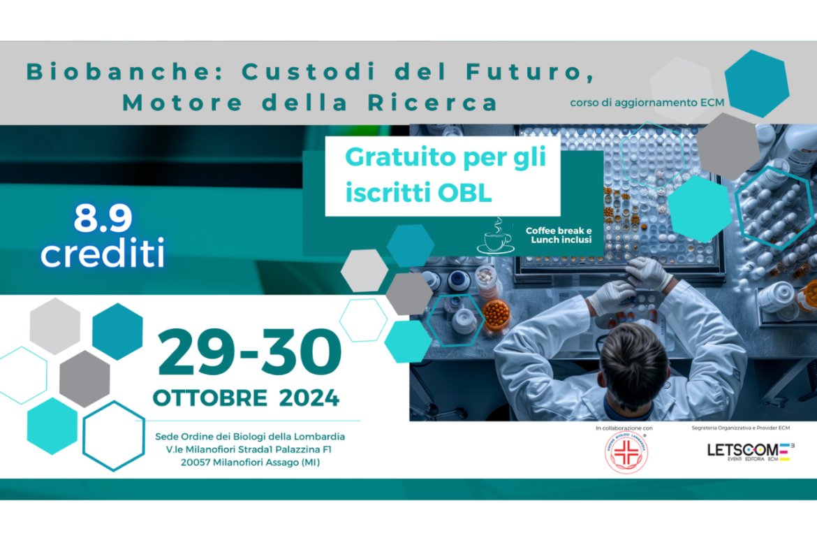 Le biobanche rappresentano una risorsa fondamentale per il progresso della ricerca scientifica, grazie alla loro capacità di raccogliere, conservare e rendere disponibili campioni biologici e dati correlati. Proprio per raccontare il loro potenziale nasce il primo corso “Biobanche: custodi del futuro, motore della ricerca”, organizzato dall’Ordine dei Biologi della Lombardia, in programma ad Assago (MI) il 29 e 30 ottobre 2024.